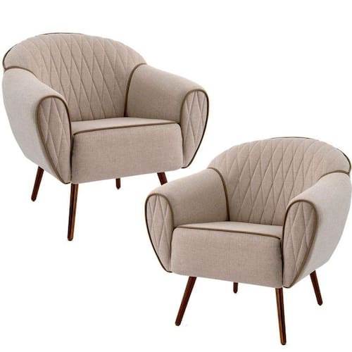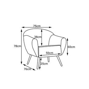 Descrição do Produto: Poltrona Decorativa Sacha é a que você estava procurando, ao sentar na poltrona rapidinho vai perceber a sensação deliciosa de aconchego, de esquecer dos problemas, de se esparramar e curtir um bom relaxamento. Pode acreditar Sacha tem medidas realmente extravagantes, é espaçosa e com certeza vai ser o seu refúgio preferido dentro de casa! Dimensões da Poltrona: Largura: 75cm Altura: 78cm Profundidade: 76cm Altura do Assento: 47cm Profundidade Livre do Assento: 49cm Altura Livre do Encosto: 38cm Largura do Assento: 50cm Largura do Braço: 12cm Altura do Braço: 60cm Altura dos Pés: 25cm Características do Produto: Material da Estrutura: Madeira reflorestada de eucalipto, partes em MDF e OSB; Encosto: Fixo em Espuma D-20 sobre percintas elásticas; Assento: Fixo em espuma D-28 HR sobre percintas elásticas; Braço: Espuma D-20; Material dos Pés: Madeira de Eucalipto; Quantidade de Pés: 04 Pés; Tipo de Pés: Fixo; Revestimento: Rústico; Peso Suportado: 100Kg; Conteúdo da Embalagem: 2 Poltronas; Necessita de Montagem: Não; Instruções/Cuidado: Utilizar um pano levemente umedecido com água, seguido de pano seco. Evitar exposição ao sol, para que o produto não sofra alterações na cor do tecido. Não limpar com escovas ou produtos abrasivos. Observações importantes: - As imagens são meramente ilustrativas e não acompanham objetos de decoração e eletros. - Pode haver alguma diferença de tonalidade entre a imagem e o produto, por conta do tratamento de imagens e a calibração de cores da sua tela. - Todos os nossos produtos são enviados devidamente embalados e com total . - Ao receber o produto o cliente deve verificar as condições da embalagem, havendo alguma não assine o de , com a para orientações. - A nossa se responsabilizará pela dos produtos adquiridos até a porta de entrada ou portaria do indicado. - Não nos responsabilizamos, no ato da , por montagens, desmontagens e instalações de produtos, bem como, por subir ou descer escadas/elevadores ou pela utilização de guinchos ou equipamentos similares para acesso a pisos superiores em apartamentos, casas ou escritórios. Estas despesas adicionais serão de responsabilidade do cliente. - Confira as dimensões do produto no momento da compra e certifique-se de que passará normalmente por elevadores, portas, escadas e/ou corredores, evitando assim futuros desagrados ou imprevistos com a do produto.