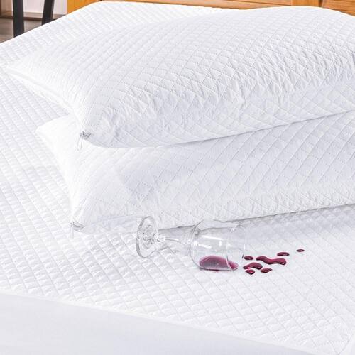 O protetor é 100% impermeável, que além de proteger o seu travesseiro da sujeira, também protege de água, suor e outros líquidos. Somente líquidos abrasivos, como produtos ácidos ou corrosivos como urina, não podem ser derrubados no protetor. É fresquinho, não faz bolinha e não faz barulho. É Anti-Alérgico, Anti-Ácaro, Anti-Fungo e Anti-Mofo. O protetor tem 04 camadas, a primeira camada é o Forro 50% Polietileno - 50% Polipropileno, a segunda camada é o Filme Impermeável, a terceira camada a Manta 100% Poliéster e a quarta camada é o tecido Microfibra 100% Poliéster. O matelado que unem essas 04 camadas é feito com solda ultrassom, não é utilizado linhas, isso aumenta a durabilidade do produto e o deixa mais bonito. O protetor de travesseiro tem fechamento com zíper. Eu recomendaria esse produto para o uso doméstico diário, como ele não esquenta e não faz barulho, é excelente para você deixar sempre no seu travesseiro, assim prolongando sua vida útil. Ele pode ser lavado na máquina no modo delicado e sem uso de alvejantes. Secar á sombra.