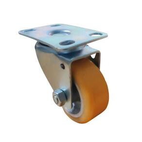 Rodizio Reforçado de Poliuretano Placa Giratória 50mmRodízio Giratório em Poliuretano Moldado produzida com revestimento em poliuretano moldado e núcleo em alumínio fundido. Ideal para aplicações nos mais diversos tipos de superfícies e ambientes. Suporta altas cargas, protege o piso, necessita de menor esforço para movimentação, produz baixo nível de ruídos no deslocamento e tem excelente durabilidade. Possui excelente resistência a abrasão, impactos, intempéries e produtos químicos como graxas, óleos, sais e solventes. Pode ser utilizada a uma velocidade de até 4km/h. Garfo fabricado em chapa estampada e cabeçote com dupla pista de , acabamento zincado. Eixo da roda parafusado.Especificação Técnica:- Material da Roda: Poliuretano- Medida da Roda: 2u0022 50,8mm - Medida da Placa: 66mm x 48mm- Altura da Roda com a Placa: 65mm- Capacidade de Peso: 100KG por roda Marca: Não Informado