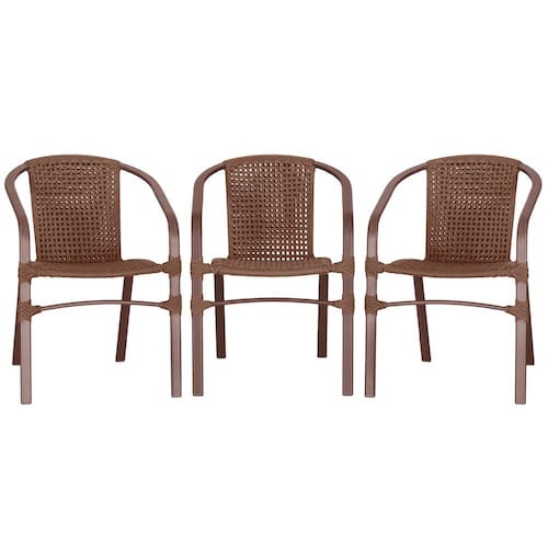 03 Cadeira Floripa Aluminio Trama - Marrom Escuro