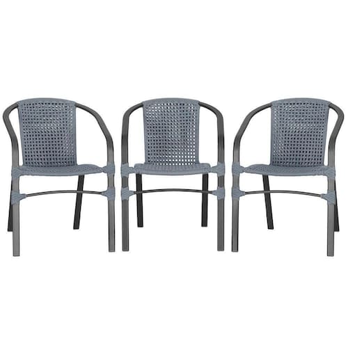 03 Cadeiras Floripa Alumínio Pintura Preta Trama Prata