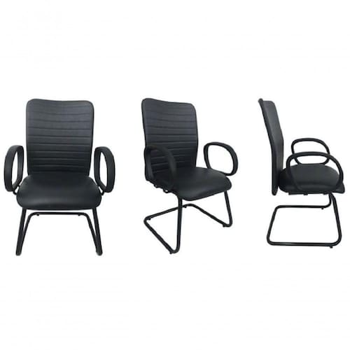 03 Cadeiras Interlocutor para sala de reunião de Escritório com encosto com gomos - Interlocutor Linha Livorno Cor: Assento Preto com Encosto Preto - Tonalidade da Cor: Assento Preto com encosto Preto - Marca: Design Office Móveis