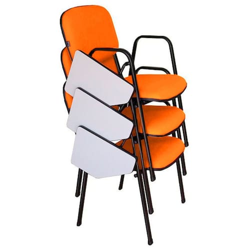03 Cadeiras Universitárias Empilháveis com Prancheta Escamoteável e Braços Fixos para Auditórios Linha Hotel Auditório Laranja - Tonalidade da Cor: Laranja - Marca: Design Office Móveis - Modelo: 03 Cadeiras Universitárias Empilháveis com Prancheta e Braços Fixos Escamoteável para Auditórios Linha Hotel Auditório Laranja O Kit com 03 Cadeiras Universitárias Empilháveis para Auditórios Linha Hotel Auditório da marca Design Office Móveis, foi projetado para proporcionar conforto e bem estar, tornando o dia-a-dia mais agradável. Utilizado para compor diversos tipos de ambientes a Linha Hotel Auditório da marca Design Office Móveis são modelos de cadeiras para hotéis e auditórios, empresas de treinamento, salas de convenções, auditório e hotéis, com medidas avantajadas, ergonômicas e confortáveis, que se diferenciam de modelos de cadeiras para hotéis e auditórios convencionais existentes no mercado, de fabricação nacional com qualidade e garantia de 1 ano, direcionado para: Hotel , Auditório, salas de convenções, igrejas,empresas de treinamento, escolas, ambientes corporativos e empresas em geral. A Cadeira é entregue totalmente montada, sem a necessidade de qualquer montagem adicional, é só tirar da caixa e sentar-se. Dimensões: Largura do assento: 46,0 cm Profundidade do Assento: 40,5 cm Largura do Encosto: 47,0 cm Altura do Encosto: 33,0cm Altura Total: 85,0 cm Profundidade Total: 56,0 cm Largura Total: 54,5cm Peso da cadeira: 6,40kg - Empilhável com até 7 cadeiras sem a prancheta Altura do chão até o assento: 44,0 cm Estrutura da Cadeira: Fixa com 4 pés. Cor da Estrutura: Preto Com Prancheta Escamoteável Com Braços Fixos Kit com 03 unidades de cadeira empilháveis Marca: Design Office Móveis Revestimento do Assento e Encosto: Material Sintético Garantia: 12 Meses/1 ano cobrindo defeitos de fabricação. **Medidas aproximadas, podendo haver variações** Observações Importantes: As medidas descritas nesse anúncio são aproximadas podendo sofrer pequenas variações sendo maiores ou menores. As cores das fotos do produto são meramente ilustrativas, a tonalidade da cor pode sofrer alterações sendo mais clara ou mais escura. Ao receber a mercadoria efetuar a conferência. Confira as dimensões do produto e certifique-se de que passará normalmente por elevadores, portas, escadas ou corredores de sua residência.