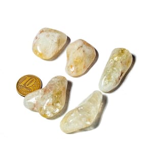 Citrino Bombardeado Rolado Natural | Pedra Amarela de Garimpo para Coleção e Esoterismo Citrino Bombardeado natural, pedra rolada de brilho intenso e coloração amarela vibrante. Ideal para práticas esotéricas, energização de ambientes ou coleções de minerais. Extraída de garimpo, cada unidade é única! Detalhes da Pedra\nNome: Citrino Bombardeado\nCor: Amarelo (foto ilustrativa)\nCorte: Rolado para realce do brilho\nTextura: Opaco com brilho acentuado\nTamanho: De 30 a 45 mm (varia conforme estoque)\nPeso médio: 20 g (pode variar)\nCaracterísticas e Benefícios\nPedra de energia solar, associada ao 3º chakra (plexo solar)\nEstimula o ânimo, prosperidade e criatividade\nUtilizada para limpeza energética e aumento de vitalidade\nInformações Adicionais:\nOrigem: Pedra natural de garimpo\nVariações de tonalidade, forma e inclusões são naturais e indicam autenticidade\nRecomenda-se hidratação com óleo mineral para conservar o brilho\nO Citrino Bombardeado é obtido pelo tratamento térmico da Ametista, revelando tons amarelos intensos e mantendo as propriedades energéticas do Quartzo. Marca: CristaisdeCurvelo