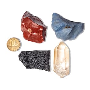 Kit de Cristais para Equilíbrio dos 4 Elementos – Quartzo Preto, Azul, Cristal e Jaspe Vermelho