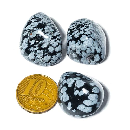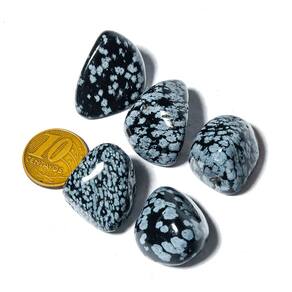 Obsidiana Flocos de Neve Rolada 30–45mm | Pedra Natural Importada Pedra autêntica e importada dos EUA, formada por lava vulcânica resfriada com água e sílica. A Obsidiana Flocos de Neve possui aparência marcante com fundo preto e cristais brancos que lembram neve. Ideal para colecionadores, decoração energética, artesanato ou uso esotérico.