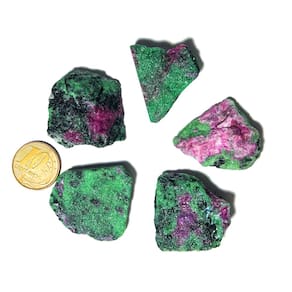Encante-se com o Rubi Bruto na Zoisita – Classe B, uma combinação rara de beleza e energia, unindo a força do rubi com a harmonia da zoisita. Uma verdadeira joia da natureza, ideal para quem busca mais do que uma simples peça decorativa: essa pedra preciosa oferece uma experiência energética única. Perfeita para meditação, proteção espiritual, estímulo à vitalidade e conexão com a prosperidade, essa pedra é muito valorizada no mundo esotérico. Sua coloração vibrante mistura tons de verde (zoisita) com manchas e cristais vermelhos intensos (rubi), criando um contraste visual poderoso e encantador. Transforme seu espaço e eleve suas vibrações com essa pedra autêntica, direto da natureza. Aproveite essa oportunidade para adquirir um mineral genuíno, com procedência garantida, e sinta a diferença que só uma pedra natural pode proporcionar. Características principais:\nNome: Rubi Bruto na Zoisita (Natural)\nCor: Verde com inclusões e cristais de rubi vermelho\nPeso: 10 a 25g, Média de 15g\nTamanho: 2 a 4cm (varia de acordo com o formato)\nOrigem: Cristais de Curvelo, MG\nAutenticidade: 100% natural, sem tratamentos artificiais\nPor que escolher o Rubi na Zoisita Natural? Ao contrário de peças artificiais ou tratadas, o Rubi na Zoisita natural carrega a força de milhões de anos de formação geológica. Cada pedra é única, com suas tonalidades vibrantes e padrões inimitáveis. Essa combinação natural promove equilíbrio entre energia, força e crescimento espiritual. Seja como amuleto de proteção, objeto de meditação, decoração ou para uso em práticas energéticas, estará investindo em um mineral de grande valor esotérico e estético, muito procurado por terapeutas holísticos, colecionadores e amantes de cristais em todo o mundo. Propriedades energéticas atribuídas:\nRubi: Estimula a vitalidade, coragem, amor próprio e paixão pela vida.\nZoisita: Promove equilíbrio, crescimento espiritual, regeneração emocional e conexão com a natureza.\nA junção dos dois minerais proporciona proteção energética, alinhamento de chakras e fortalecimento da aura.\nObservação: Por se tratar de uma pedra natural, cada peça possui formatos, tonalidades e padrões únicos, podendo apresentar áreas mais lisas, irregulares ou texturizadas. Não perca a chance de ter essa pedra poderosa em suas mãos! Adicione ao seu carrinho agora e sinta a energia transformadora que só o Rubi na Zoisita natural pode oferecer.