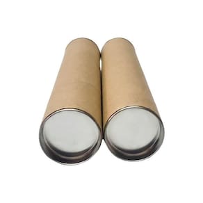 - Tubo postal de papelão com 25 cm de comprimento e 4 cm de diâmetro interno . - Comprimento útil interno 23 cm. - Fabricado em camadas de papel kraft pardo. - Espessura média entre 1.5 e 2.0 mm. - Tampa e fundo metálicos.