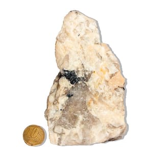 Eleve suas energias com esta impressionante peça de Turmalina Preta no Feldspato. Naturalmente bela e imponente, esta pedra é perfeita para iluminar e proteger seus espaços. Características da Peça: Nome: Turmalina Preta no Feldspato Cor: Preto com contraste em branco do feldspato Lapidação: Base serrada para estabilidade Peso: 0,5 a 1Kg Medida aproximada: 10 a 14cm de altura, varia confome formato e peso da pedra. Origem: Brasil Tipo: B Observações: Sendo uma peça natural, podem ocorrer variações na coloração e textura, bem como pequenas inclusões que reforçam sua autenticidade. Recomenda-se limpeza regular e energização à luz do sol para manter suas propriedades. Propriedades Energéticas da Turmalina Preta: Proteção Energética: A Turmalina Preta é uma poderosa pedra de proteção, atuando como um escudo contra energias negativas e influências externas. É especialmente eficaz em neutralizar ataques psíquicos e bloqueios energéticos. Adquira esta peça única e traga a poderosa energia da Turmalina Preta para o seu ambiente! Marca: CristaisdeCurvelo
