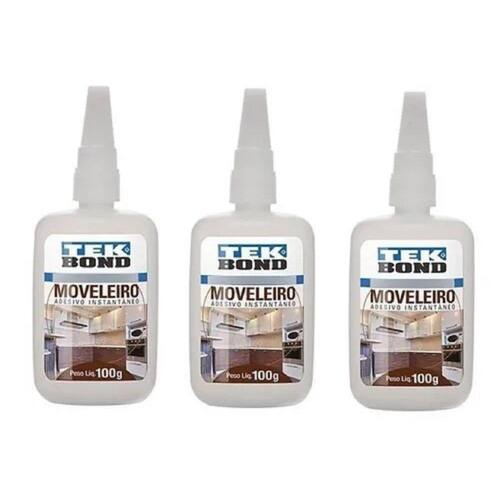Cola Instantânea Tek Bond 100gIndicado para superfícies flexíveis. Adere uma ampla variedade de metais, plásticos, borrachas e outros materiais.CARACTERÍSTICAS:É um adesivo à base de cianoacrilato desenvolvido para colagens que necessitam de alta velocidade de cura e excelente resistência. É um produto monocomponente e não requer mistura. O processo de cura inicia-se quando uma fina camada de adesivo é aplicada entre as superfícies, entrando em contato com a umidade do ar atmosférico.MODO DE USO:Deve-se aplicar uma camada fina de adesivo em apenas 1 um dos substratos a serem colados, pois o excesso prejudica o bom desempenho da colagem.Após aplicação do adesivo, devem-se manter as peças pressionadas por aproximadamente 20 segundos, quando a cura inicial estará concluída e a peça poderá ser manuseada com segurança. A cura total ocorrerá em 24 horas.Este adesivo é indicado para folgas de até 0,06mm.PRECAUÇÕES:O excesso de cola prejudica a colagem. Cola a pele e olhos em pouco segundos. Mantenha fora do alcance das crianças.DADOS TÉCNICOS:Viscosidade cP : 40 a 60Temperatura de Trabalho ºC : -55 a 80Preenchimento de Folgas mm : Até 0,06Resistência ao Cisalhamento Aço x Aço : = 100Kgf/cm2 Ean: 1104001154546
