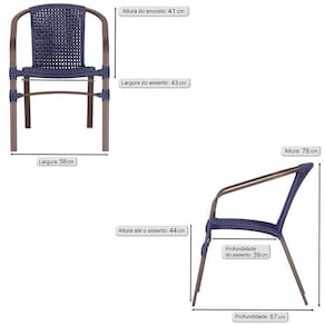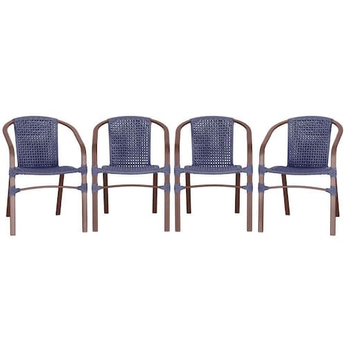 04 Cadeiras Floripa Alumínio Pintura Marrom Trama Azul