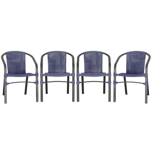 04 Cadeiras Floripa Alumínio Pintura Preta Trama Azul