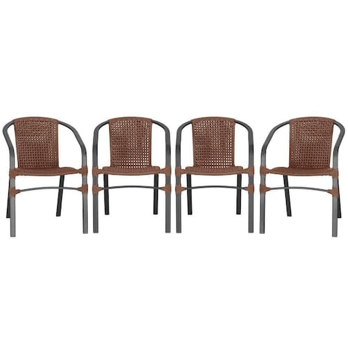 04 Cadeiras Floripa Alumínio Pintura Preta Trama Marrom