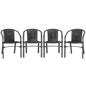04 Cadeiras Floripa Alumínio Pintura Preta Trama Preto