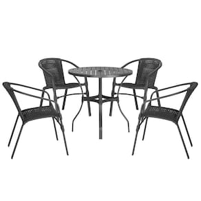 04 Cadeiras Floripa E Mesa Roma 100cm Preta Trama Preto