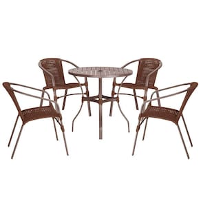 04 Cadeiras Floripa E Mesa Roma 80cm Marrom Trama Marrom