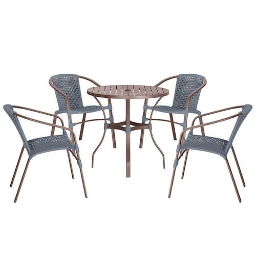Composto por cadeiras de aluminio tramadas em corda nautica e uma elegante mesa com tampo ro, esse conjunto une sofisticacao e resistencia em cada detalhe.