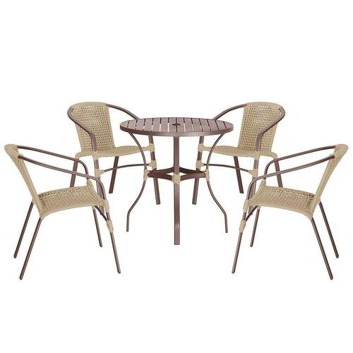 04 Cadeiras Floripa E Mesa Roma 80cm Marrom Trama Rami