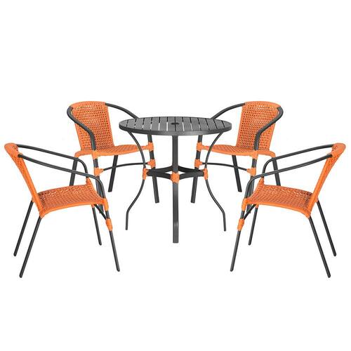 04 Cadeiras Floripa e Mesa Roma Trama - Laranja