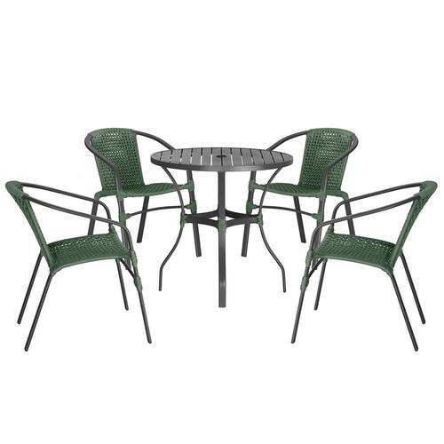 04 Cadeiras Floripa e Mesa Roma Trama - Verde Musgo