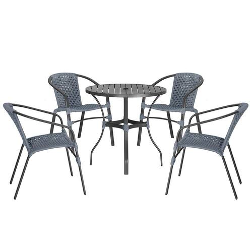 04 Cadeiras Floripa e Mesa Roma Trama - Prata