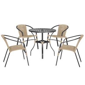 04 Cadeiras Floripa e Mesa Roma Trama - Bege Médio