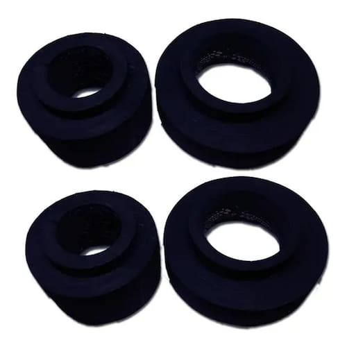 04 calço de mola dianteiro 3cm e traseiro 4cm do honda fit Os calços ou batentes da xtx borrachas são ideais para aqueles carros que sofreram alguma alteração, tais como: instalação de gnv ou blindagem automotiva, e também para quem quer deixar o seu carro mais alto. 04 unidades de calço de molas, 02 dianteiro e 02 traseiro - par de calço de mola dianteiro de 3cm do honda fit 2004 à 2016 - par de calço de mola traseiro de 4cm do honda fit 2004 à 2016 As principais funções: - elevar a altura do veículo automotor; - erguer o veículo que se encontra com molas cansadas; - altear seu veículo que transporta peso, possui som automotivo ou possui gnv; - reduz ruídos e vibrações. - Cód. FIT-0305 Dúvidas frequentes 01 - as borrachas da xtx borrachas são feitas de qual material São duráveis - nossas borrachas são feitas de pneu de empilhadeira maciça e sua durabilidade pode chegar à até 10 anos de uso. 02 - já que as borrachas da xtx borrachas são feitas de pneu maciço, meu carro vai ficar muito duro - não por ser pneu maciço, a borracha é bem macia, no qual deixará seu carro bastante confortavel e alguns caso, irá até diminuir aquelas batedeiras que seu carro possa já ter. 03 - as borrachas da xtx borrachas correm algum risco de escapar da mola - não pois usamos as medidas das montadoras, modificamos apenas a altura das peças. Em alguns, o nosso calço é feito para encaixar perfeitamente na parte interna da mola, assim passando mais confiança para quem utiliza nossos calços/batentes.