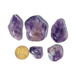 5 Unidades de Ametista Rolada Natural – Tamanho Médio – Pedra da Sabedoria, Proteção e Equilíbrio Leve para onde for a energia poderosa da Ametista!Este kit com 5 pedras de Ametista rolada natural é ideal para quem busca equilíbrio emocional, proteção espiritual e um toque de serenidade no dia a dia. Perfeitas para meditação, terapias energéticas ou para carregar na bolsa e no ambiente de trabalho. Benefícios da Ametista: