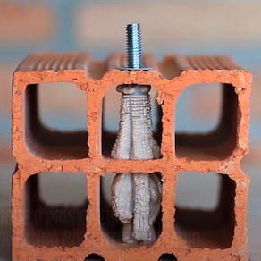 O sistema de fixação versátil com camisas para químicos de injeção em alvenaria de tijolo perfurado