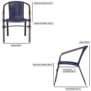 05 Cadeiras Floripa Alumínio Pintura Marrom Trama Azul