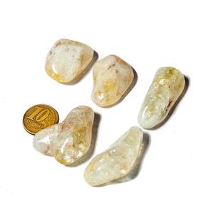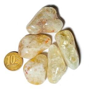 Citrino Bombardeado Rolado Natural | Pedra Amarela de Garimpo para Coleção e Esoterismo Citrino Bombardeado natural, pedra rolada de brilho intenso e coloração amarela vibrante. Ideal para práticas esotéricas, energização de ambientes ou coleções de minerais. Extraída de garimpo, cada unidade é única! Detalhes da Pedra\nNome: Citrino Bombardeado\nCor: Amarelo (foto ilustrativa)\nCorte: Rolado para realce do brilho\nTextura: Opaco com brilho acentuado\nTamanho: De 30 a 45 mm (varia conforme estoque)\nPeso médio: 20 g (pode variar)\nCaracterísticas e Benefícios\nPedra de energia solar, associada ao 3º chakra (plexo solar)\nEstimula o ânimo, prosperidade e criatividade\nUtilizada para limpeza energética e aumento de vitalidade\nInformações Adicionais:\nOrigem: Pedra natural de garimpo\nVariações de tonalidade, forma e inclusões são naturais e indicam autenticidade\nRecomenda-se hidratação com óleo mineral para conservar o brilho\nO Citrino Bombardeado é obtido pelo tratamento térmico da Ametista, revelando tons amarelos intensos e mantendo as propriedades energéticas do Quartzo. Marca: CristaisdeCurvelo