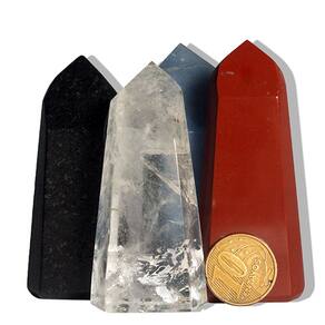Formato das Pedras: Pontas de 6 faces com base reta, projetadas para direcionar a energia de forma eficaz