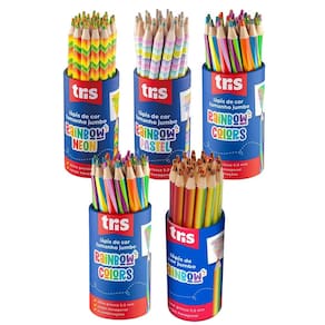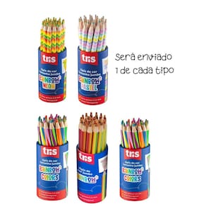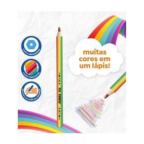 São muuuuuuuitas cores em um lápis! Lápis de cor tamanho jumbo, com corp o hexagonal em madeira que encaixa na mão! Mina grossa de 5,5mm que evit a a quebra. Com 6 novas combinações de cores.