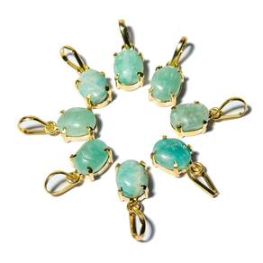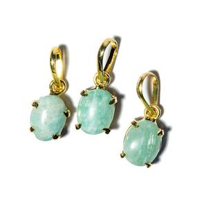 Mini Ponto de Luz Amazonita | Cabochão Liso na Garra Um pingente delicado, elegante e cheio de boas energias. A Amazonita é conhecida como a pedra da tranquilidade e da comunicação — símbolo de equilíbrio emocional, coragem e expressão pessoal. Com corte cabochão liso e montagem em garra, este pingente é perfeito para quem busca harmonia interior e uma conexão leve com o bem-estar no dia a dia. O que irá receber:\n5 pingente com pedra natural de Amazonita\nDetalhes do Pingente:\nPedra: Amazonita Natural\nFormato: Mini cabochão liso oval\nTamanho da pedra: Aproximadamente 10 x 8 mm (podem ocorrer variações naturais)\nMontagem: Garra com presilha dourada\nPeso estimado da pedra: Cerca de 6 quilates\nBrilho: Fosco a levemente vítreo, com tonalidade verde-azulada suave\nOrigem da montagem: Curvelo - MG\nImportante: Pedra natural — os tons podem variar entre verde-claro e azul-esverdeado, com possíveis veios brancos ou marmorizados\nSignificado da Amazonita: A Amazonita é uma pedra associada à paz interior, equilíbrio mental e comunicação clara. Atua no chakra da garganta e do coração, promovendo expressão sincera, alívio do tensão e harmonização das emoções. Também é considerada uma pedra de coragem, ideal para quem está enfrentando mudanças ou desafios emocionais. Marca: CristaisdeCurvelo