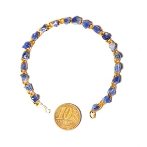 Observação Importante: Esta pulseira foi projetada para ser uma opção econômica e acessível. A pedra de sodalita está colada na corrente e, com o tempo, pode soltar-se. Recomendamos que leia atentamente e entenda esta característica antes da compra. Características Especiais: