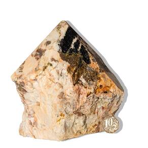 Nome: Turmalina Preta no Feldspato Cor: Preto com contraste branco do Feldspato Base serrada: Para maior estabilidade Peso: 1 a 2Kg Altura: 10 a 14cm (varia conforme o formato) Origem: Brasil Tipo: C (natural e não tratada) Autenticidade e Cuidados: Por ser uma peça 100% natural, pode haver variações na cor, textura e presença de inclusões, o que reforça sua autenticidade. Recomendamos limpeza regular e energização à luz solar para manter suas propriedades.
