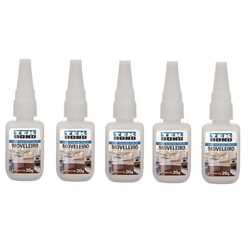 - Bico anti-entupimento- O adesivo Tekbond é recomendado principalmente para adesões que necessitam de alta velocidade de cura e excelente resistência.- É um produto monocomponente a base de cianoacrilato e não requer mistura.- O processo de cura inicia-se quando o adesivo entra em contato com a umidade. A Cola Instantânea Tekbond é ideal para colar superfícies irregulares.Média Viscosidade.Cura Rápida.Pode ser utilizada em: Borrachas. Madeiras. Plásticos. Metais. Cortiças. Porcelanas. Papéis e outros.Modo de usar:Para obter um resultado satisfatório, as superfícies devem estar limpas, isentas de óleo e sujeira.Deve-se aplicar uma camada fina de adesivo em apenas 1 um dos substratos a serem colados, pois o excesso prejudica o bom desempenho da colagem.Após aplicação do adesivo, devem-se manter as peças pressionadas por aproximadamente 10 segundos, onde a cura inicial estará concluída e a peça poderá ser manuseada com segurança.A cura total ocorrerá em 24 horas.Se necessária limpeza do excesso de adesivo deve ser feita com acetona ou MEK metil etil cetona .Não adere a plásticos a base de poliolefinas PP , silicone e Teflon Marca registrada Dupont .Para essa adesão utilize o Primer poliolefínico TEK BOND.Para manuseio do produto, recomenda-se a utilização de EPIs.Para maiores informações de segurança, consultar a FISPQ do produto.Madeira com Madeira:- 15 segundos.Borracha com Borracha:- 10 segundos.Plástico com Plástico:- 15 segundosCouro com Couro:- 20 segundos