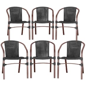 06 Cadeiras Floripa Alumínio Pintura Marrom Corda Nautica Tr Preto
