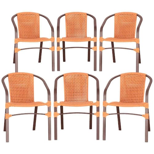 06 Cadeiras Floripa Alumínio Pintura Marrom Corda Nautica Tr Terra Cota