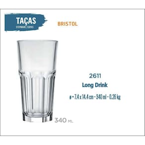 06 Copos Bristol 340Ml - Long Drink - Suco - Vitamina