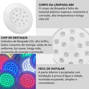 • A luminária para piscina 15W RGB Desenvolvida em Policarbonato e Resinado• e seu diâmetro é de 130mm. De fácil instalação,• é ideal para uso submerso (IP68) e oferece alta luminosidade.• Pode ser aplicada em escadas, prainhas de piscinas,• e chafarizes. outros nichos para (alvenaria, vinil ou fibra)• e vendido a parte peças nas perguntas• Foi desenvolvida cuidadosamente com materiais de qualidade• Para garantir alta proteção contra intempéries (cloro, sol, maresia, etc)================================_ INFORMAÇOÊS DO REFLETOR RGB• Potência: 15 Watts• Voltagem: 12V Estabilizada• Potência: 15 Watts cada Refletor - Cada Refletor Ilumina 15 m2• Fonte de Luz: LED SMD; Todos 100% RGB• Ângulo de abertura dos LED's de 120°• Proteção: IP68 À prova d'água (Uso submerso);• Material: Policarbonato• Vida útil aproximada: 120 mil horas• Cores do Acabamento: Branco• Cor da Luz: RGB (Vermelho, verde ou azul) Todos LEDs são RGB_ MEDIDAS DO REFLETOR• Diâmetro: ULTRA SLIM 130mm• Profundidade: 30mm• Tamanho do Cabo 1 metro em cada LED• Medida do cano C/ Rosca: TEM ROSCA PARA >>> TUBO 50MM• Outros Nichos vc precisa adquirir a parte================================especificações:tensão de alimentação: DC 12 V-24 Vcorrente de saída: < 4A (cada canal)saída: 3 canaismodo de conexão: ânodo Comumtemperatura de trabalho:-20-60 grausa Pilha do Controle remoto: 1 * Bateria de 23Atamanho controlador: aprox. 12.1*7.5*2.5 cm/4.8*3 * 1inpeso controlador: aprox. 180g/6.34 oztamanho do controle remoto: aprox. 8.5*3.6*1.5 cm/3.3*1.4 * 0.6intamanho do pacote: aprox. 13.5*7.5*5.5 cm/5.3*3 * 2.2inpeso da embalagem: aprox. 250g/8.8z================================_ INFORMAÇÕES DA FONTE• Alimentação: Bivolt Automático FULL RANGE• Proteção contra curto circuito e sobrecarga na saída• Voltagem 110v-220v Bivolt• Saída: 12 Volts Blindada