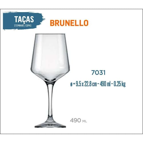 06 Taças Brunello 490ml - Vinho Tinto Rosé Branco Água Taça Brunello 490ml - Vinho Tinto Rosé Branco Água