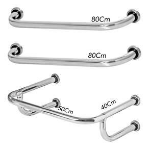 Conteúdo da embalagem - 2 Barras de apoio para banheiro de 80Cm e 1 Barra de apoio para lavatório 50x40Cm.
