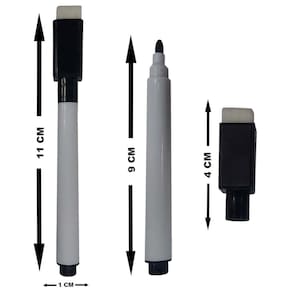 • 1 Caneta para quadro branco 11x1cm com apagador e imã na tampa
