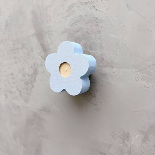 A face vai colada com super cola e acaba sendo apenas decorativa, pois é o suporte quem recebe o esforço, suportando até 5 Kg. Anúncio referênte à 1 unidade. Modelo: Flor Tamanho da face: 5,0cm X 5,0cm; Material: MDF laminado 15mm melamínico | borda pintada Cor: Rosa, Azul, Branco e Cinza
