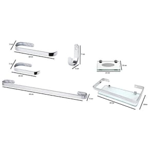 Conjunto sofisticado que inclui: porta-toalha de banho 60 cm, porta-toalha de rosto, saboneteira, papeleira, cabideiro e porta-shampoo, todos com acabamento de qualidade. Ideal para dar estilo, organização e funcionalidade ao banheiro.