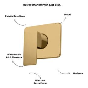 KIT Acompanha: 01 ALAVANCA SLIM MONOCOMADO 01 FIXA CANOPLA MONOCOMADO 01 CANOPLA MONOCOMADO 01 PARAFUSO ALLEN 02 ACABAMENTO BARCELONA DOURADO FOSCO TODO METAL