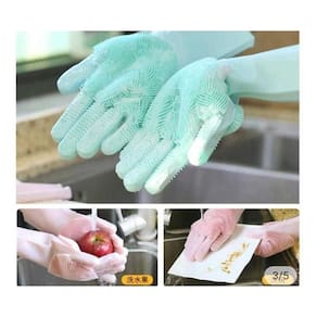 1 Par De Luvas Esponja Lava Louça De Silicone Produto: par de Luvas Esponja Lava Louça de Silicone Marca: Your Cor: Verde Claro Material: silicone Medidas: 13,5cm x 27cm x 1cm