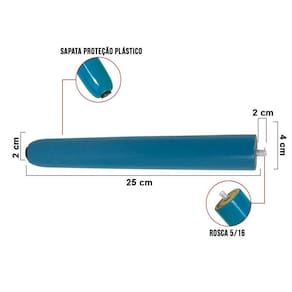 1 Pé Palito Azul 25 Cm Com Rosca Metal Para Móveis D10 - D'rossi Transforme e revitalize seus móveis com o toque de elegância e modernidade que só o estilo retrô oferece! Transforme e revitalize seus móveis com o toque de elegância e modernidade que só o estilo retrô oferece! Apresentamos o Pé Palito Retrô na vibrante cor Azul, a solução ideal para injetar personalidade ao seu ambiente. Com comprimento de 25 cm, esta peça é fabricada em resistente Madeira de Eucalipto reflorestada, garantindo durabilidade e estabilidade robusta. Seu design cônico é perfeito para elevar rack, poltrona, puff ou mesa de apoio, proporcionando um visual sofisticado. A instalação é simplificada pela rosca embutida, e a segurança do seu piso é garantida: o pé conta com uma sapata de proteção de plástico na base, que previne riscos e danos. A cor é um diferencial que se destaca, harmonizando-se com decorações modernas ou clássicas. Qualidade superior para renovar seus projetos!Dimensões do Produto:Comprimento Total: 25 cmDiâmetro do Corpo (Base): 4 cmDiâmetro da Ponta Cônica: 2 cmRosca de Fixação: 5/16 polegadasComprimento da Rosca: 2 cmPeso: 0,2 kgEspecificações do ProdutoMaterial: Madeira EucaliptoAcabamento: Ponta Cônica com Sapata de ProteçãoDiferencial: Alta Durabilidade, Design Cônico Protetor, Rosca de Fácil Instalação.Tipo de Fixação: Rosca IntegradaGarantia: 90 dias contra defeito de fabricaçãoInstruções de limpeza: Utilizar um pano limpo e levemente úmidoVocê irá receber: 01 Volume com 01 Pé Palito
