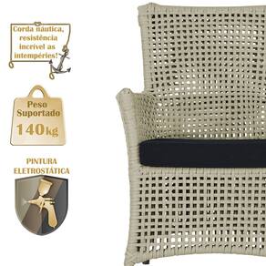 A corda náutica adiciona um toque de rusticidade moderna, enquanto o estofado impermeável garante que sua poltrona esteja sempre impecável, mesmo após uma chuva inesperada ou um acidente com líquidos.